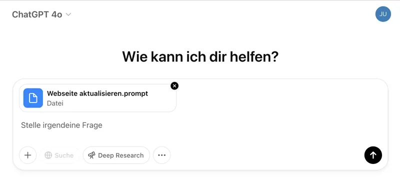 Falls du unsicher bist, lass das Eingabefeld leer und starte den Prompt ohne eine spezielle Anweisung. Dann erhältst du weitere Infos, wie du am besten vorgehen kannst. Hast du irgendwelche Fragen, dann stelle sie einfach.